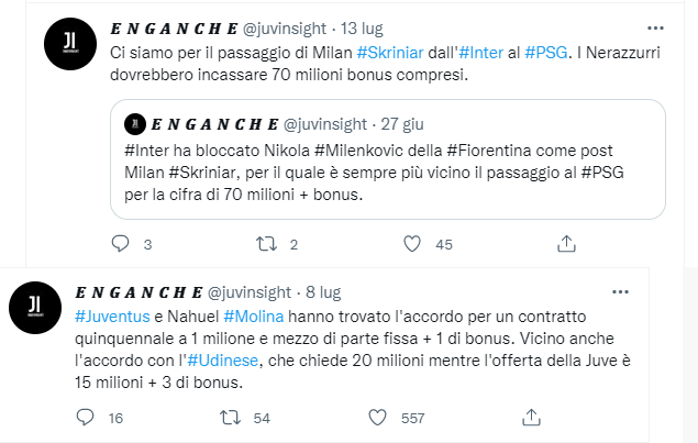 La verità è che sulla Juve non sa nulla nessuno.. l’unico serio che mi piace leggere è il buon Paolo nonmollo ma anche lui a volte ci prende altre meno.. non per colpa sua ovviamente.. il mercato è troppo imprevedibile.