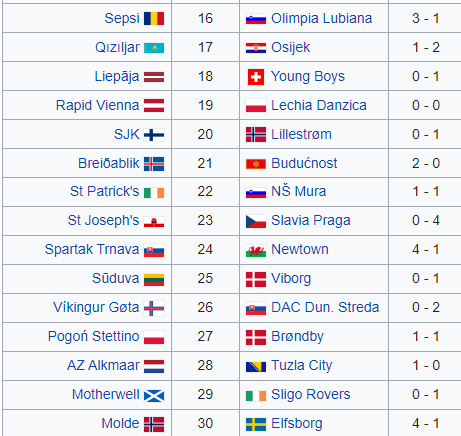 Minsk, un paio di squadre polacche, Tirana e Rejkiavic sono le uniche già sentite negli ultimi anni...le altre son sempre le solite comparse ai livelli europei inferiori.