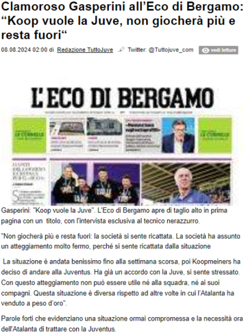 Di fatto Gasperini ha confermato che c'è un accordo tra noi e Koop. Forza .rulez