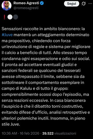 "Con pacatezza ma senza arroganza" e "la Juventus è la soluzione non il problema". Gira e rigira è sempre la solita m***a.