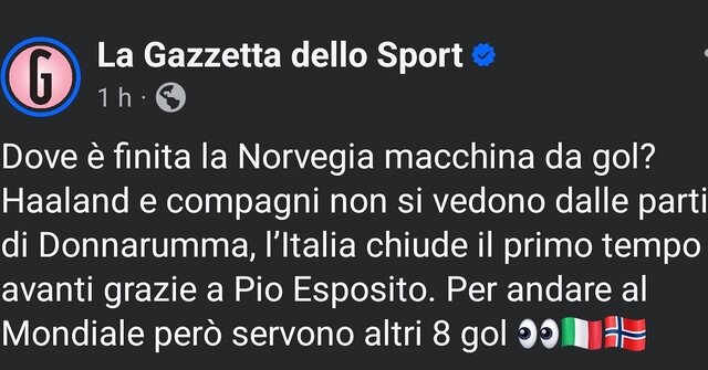 Comunque Adani non si può sentire. Vero che la Norvegia ad oggi è più forte dell'Italia, ma sembra che abbiamo giocato contro la Francia di Henry ecc...Nusa giovanissimo in rampa di lancio sembra CR7, Oscar Bobb altro giovane ma non è ancora sto fenomeno...e poi per terminare il temibilissimo Larsen! autore di 14 gol con il Wolverhampton alla Pinamonti in pratica.